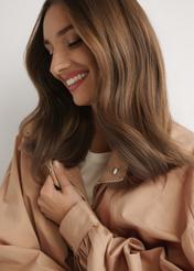 Бежева коротка жіноча куртка oversize — сучасна пропозиція для поціновувачок вільного міського стилю.
