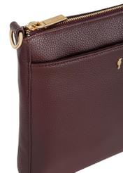 Функціональна жіноча сумочка бордового кольору з гороховою структурою. Сумка має тканинний, знімний і регульований ремінець, що дозволяє носити її на плечі або через плече. Модель такого крою та кольору доповнить багато образів.
