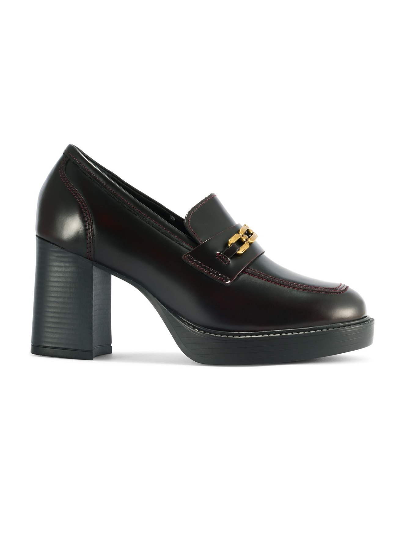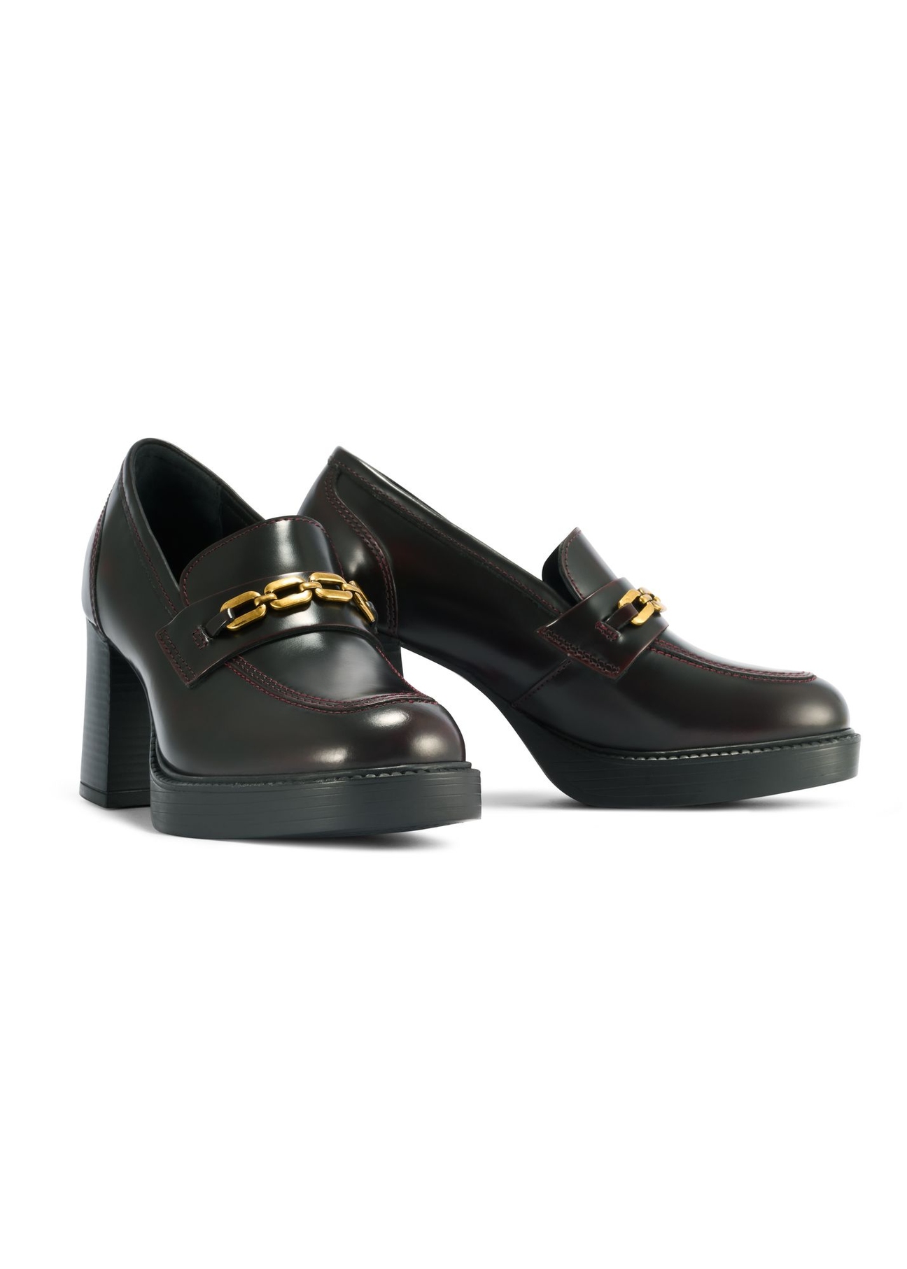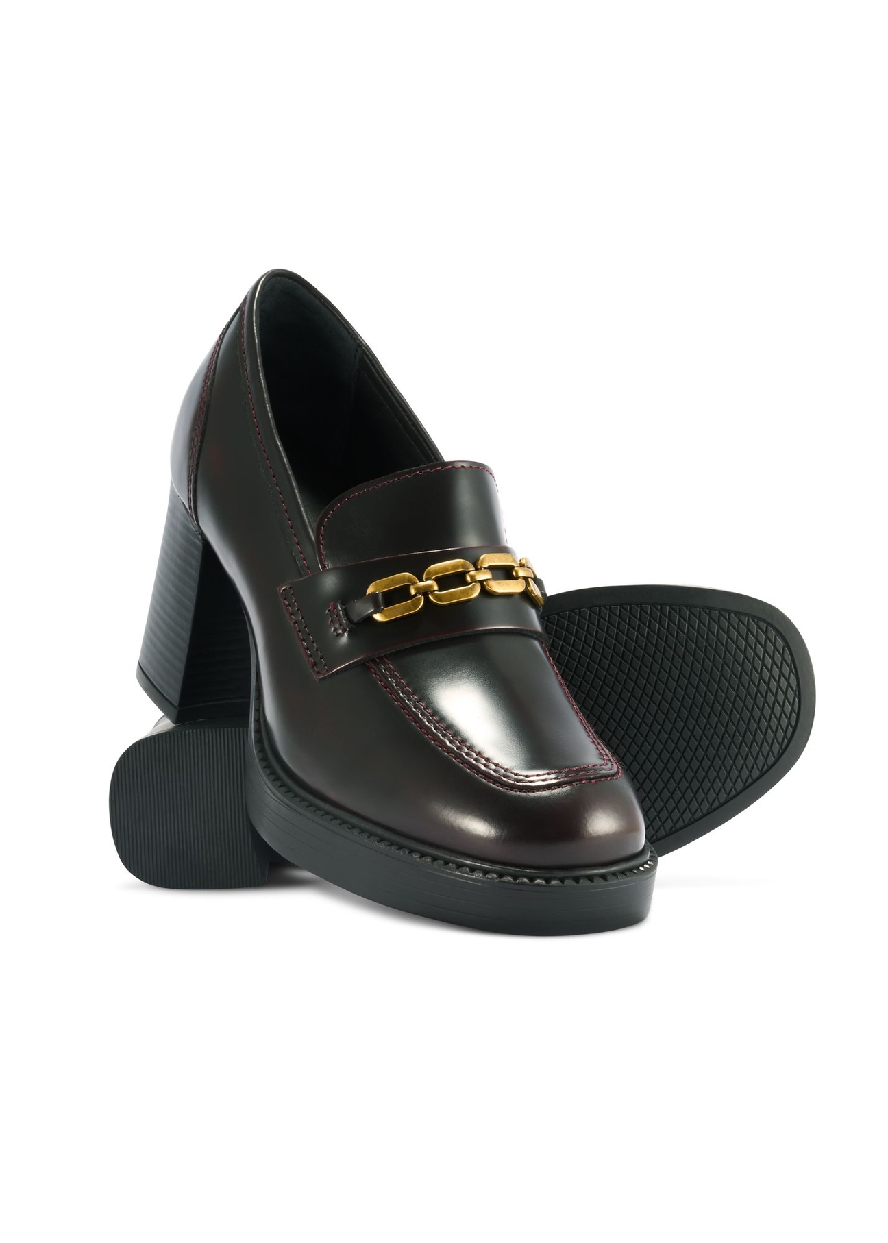 Бордові жіночі шкіряні лофери на підборах — це класичне взуття, яке додає образу вишуканості та впевненості.