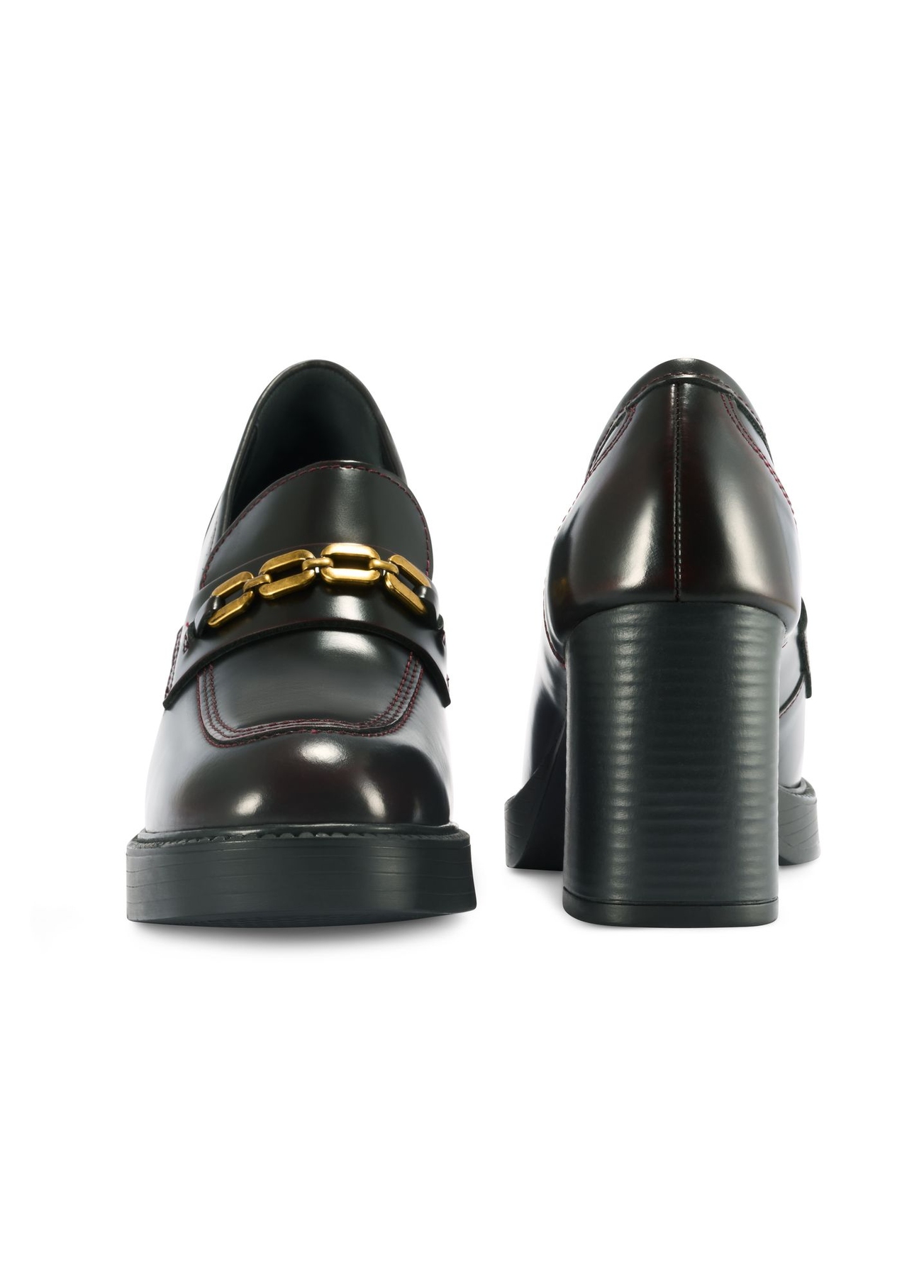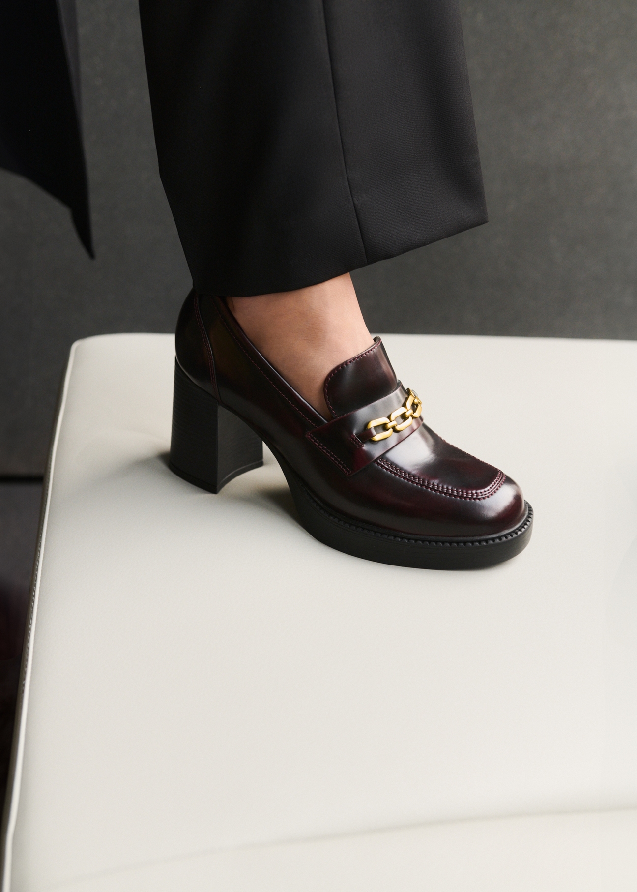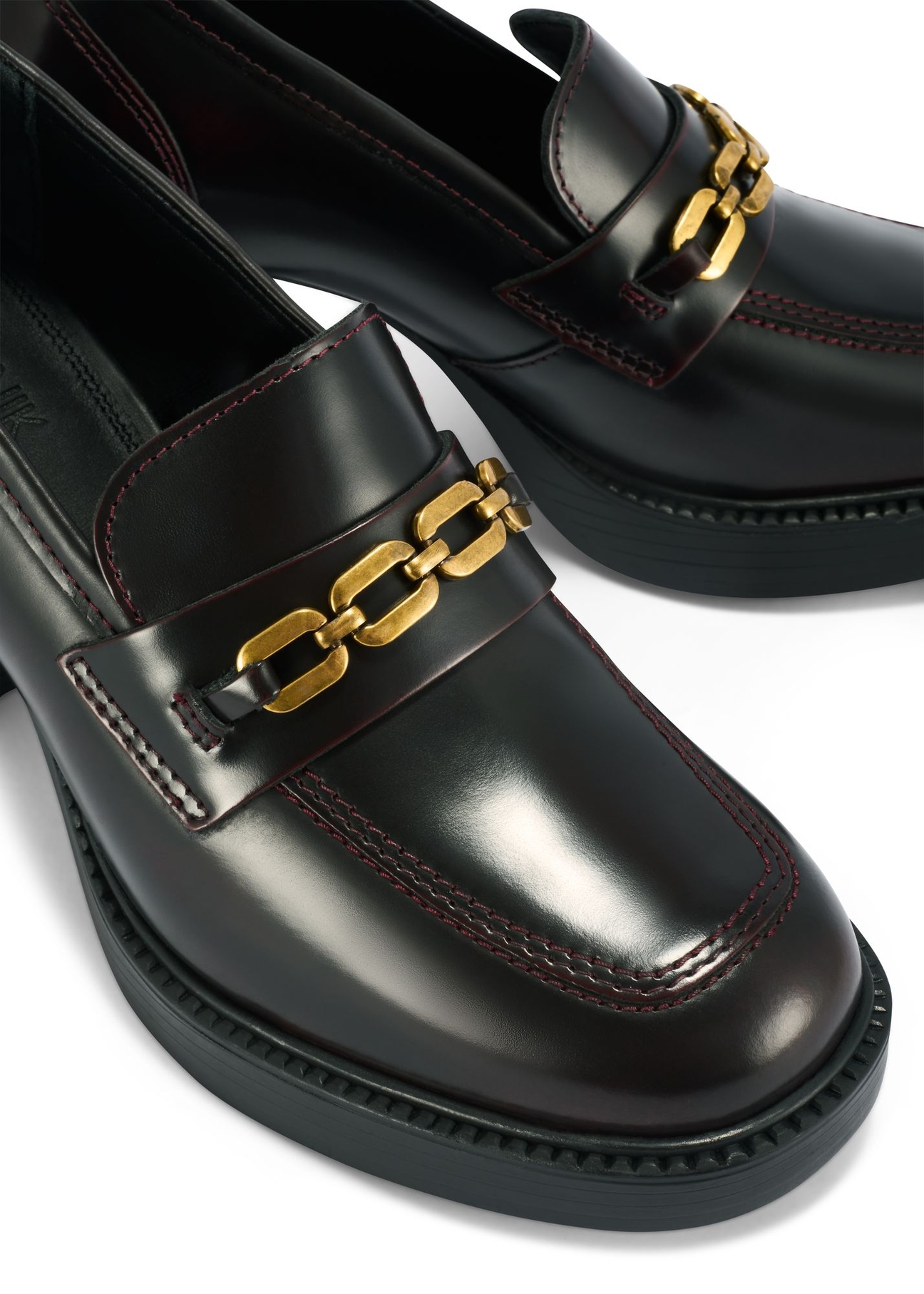 Бордові жіночі шкіряні лофери на підборах — це класичне взуття, яке додає образу вишуканості та впевненості.