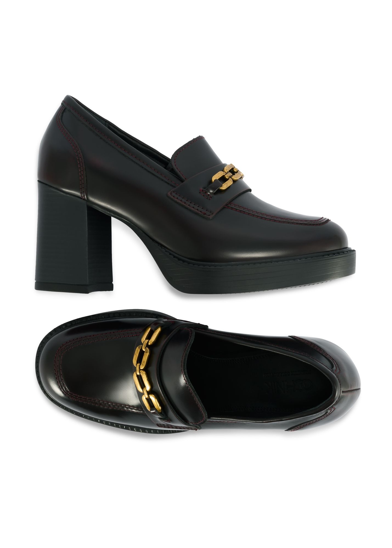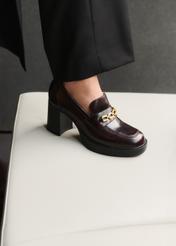 Лофери бордового кольору виготовлені з натуральної шкіри великої рогатої худоби. Глибокий відтінок бордо та декоративний елемент у золотистому кольорі створюють ефектний акцент і підкреслюють стиль.