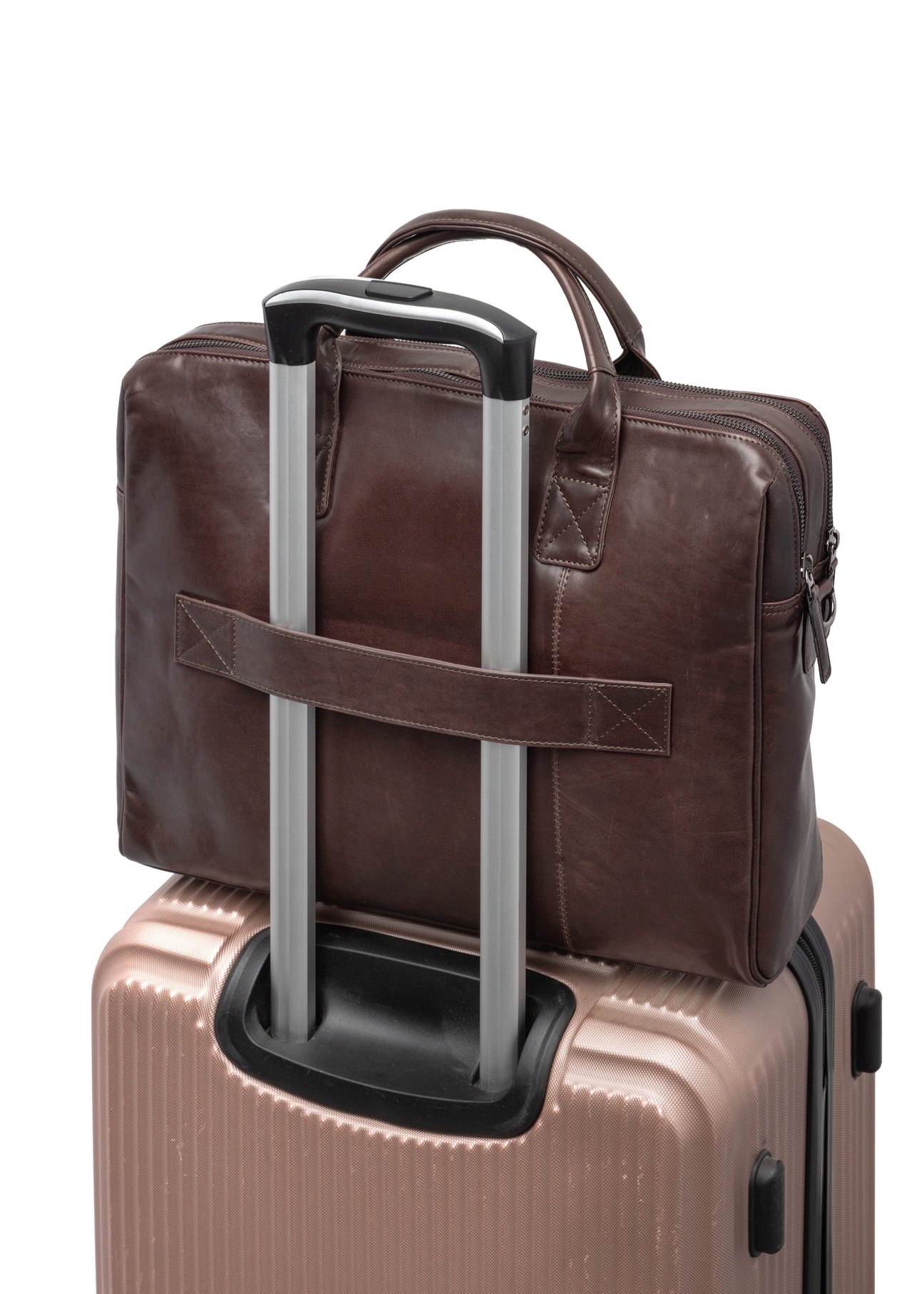 usztywniana, podwójna kieszeń idealna na laptop lub tablet, a także trzy mniejsze kieszonki, w tym jedna zapinana na suwak.