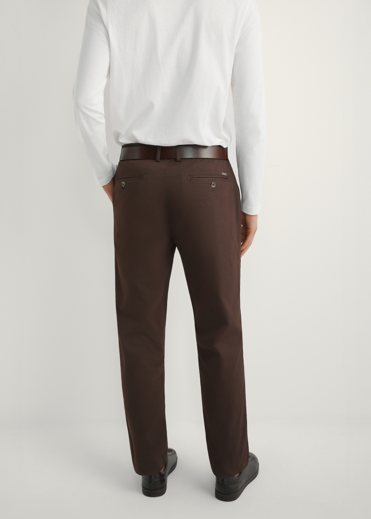 Brązowe męskie spodnie o klasycznym, eleganckim odcieniu to niezawodna baza każdej stylizacji.