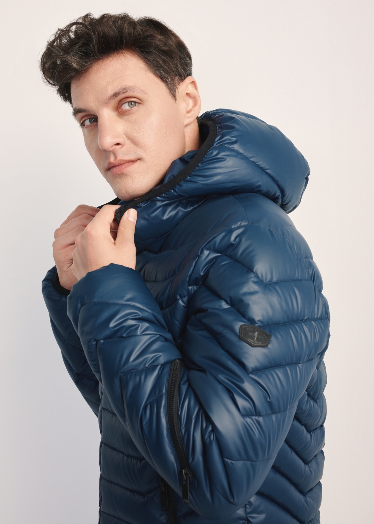 Чоловіча куртка вражає класичним темно-синім кольором, який є поза часом та універсальним. Модель має зручну застібку на блискавку, що забезпечує швидке і комфортне носіння та ефективно захищає від холоду. Невід’ємний капюшон — додатковий плюс, ідеальний для вітряних або дощових днів. Внутрішня частина куртки оснащена утепленням, що забезпечує теплоту навіть за низьких температур, роблячи її ідеальним супутником на кожен день, для роботи, школи чи вихідних прогулянок містом. На передній частині є дві зовнішні кишені на блискавці, які вмістять найнеобхідніші речі або обігріють руки в холодні дні. Додаткова кишеня на рукаві з замком — практичне рішення для дрібниць, таких як ключі чи абонемент. Внутрішня частина має ще одну захищену кишеню на блискавці, ідеальну для телефону, документів або гаманця. Завдяки цьому ви отримаєте безпеку та організованість на найвищому рівні. На рукаві розташований стильний, але в той же час виразний емблема бренду, який підкреслює сучасний вигляд куртки.