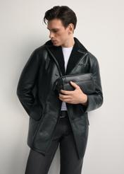 Оригінальна чоловіча косметичка з високоякісної натуральної шкіри чорного кольору. Модель має ремінець, що дозволяє вільно носити її в руці.