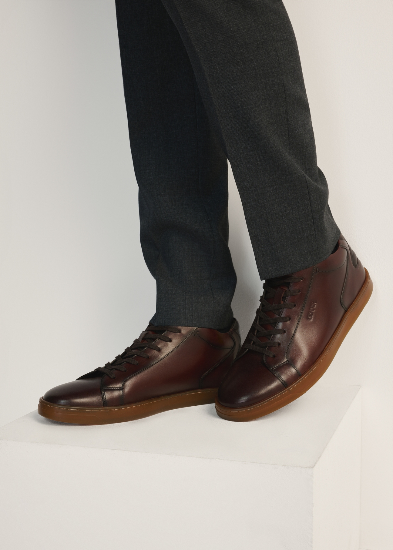 Чоловіче спортивне взуття чорного кольору. Виготовлене з натуральної коров’ячої шкіри та натуральної овчини. Модель вирізняється цікавим, спортивним стилем, оригінальним кроєм та комфортом у використанні. Ідеальний елемент чоловічого гардеробу в повсякденному стилі.