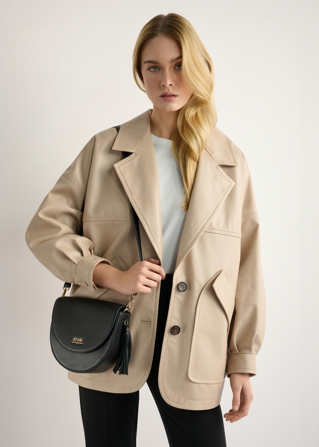 Виготовлена з натуральної шкіри з гранульованою фактурою, вражає довговічністю та витонченою структурою, яка надає їй благородного завершення.