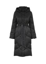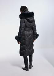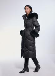 Ця чорна, довга жіноча куртка поєднує в собі розкішний стиль і найвищий комфорт носіння.