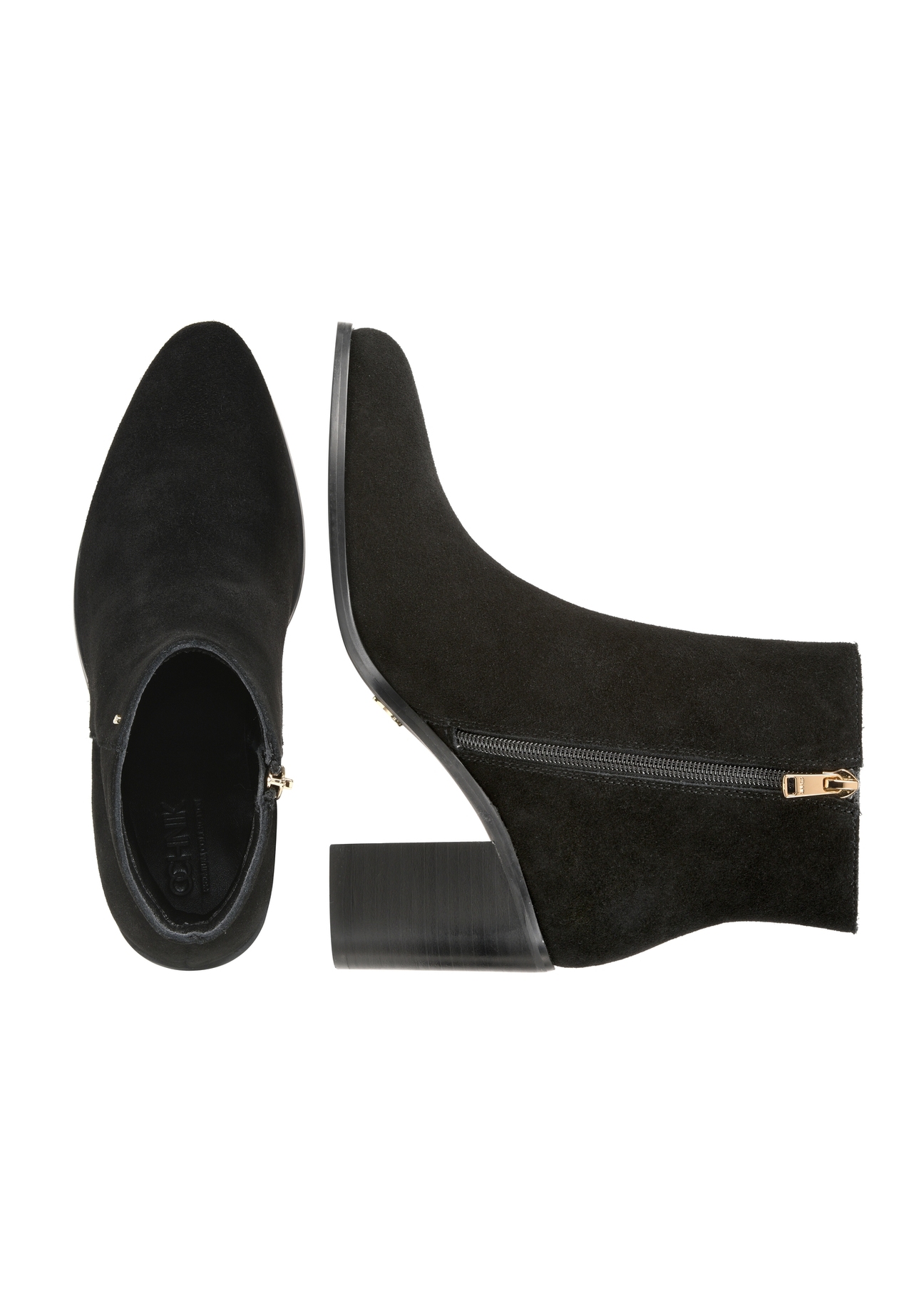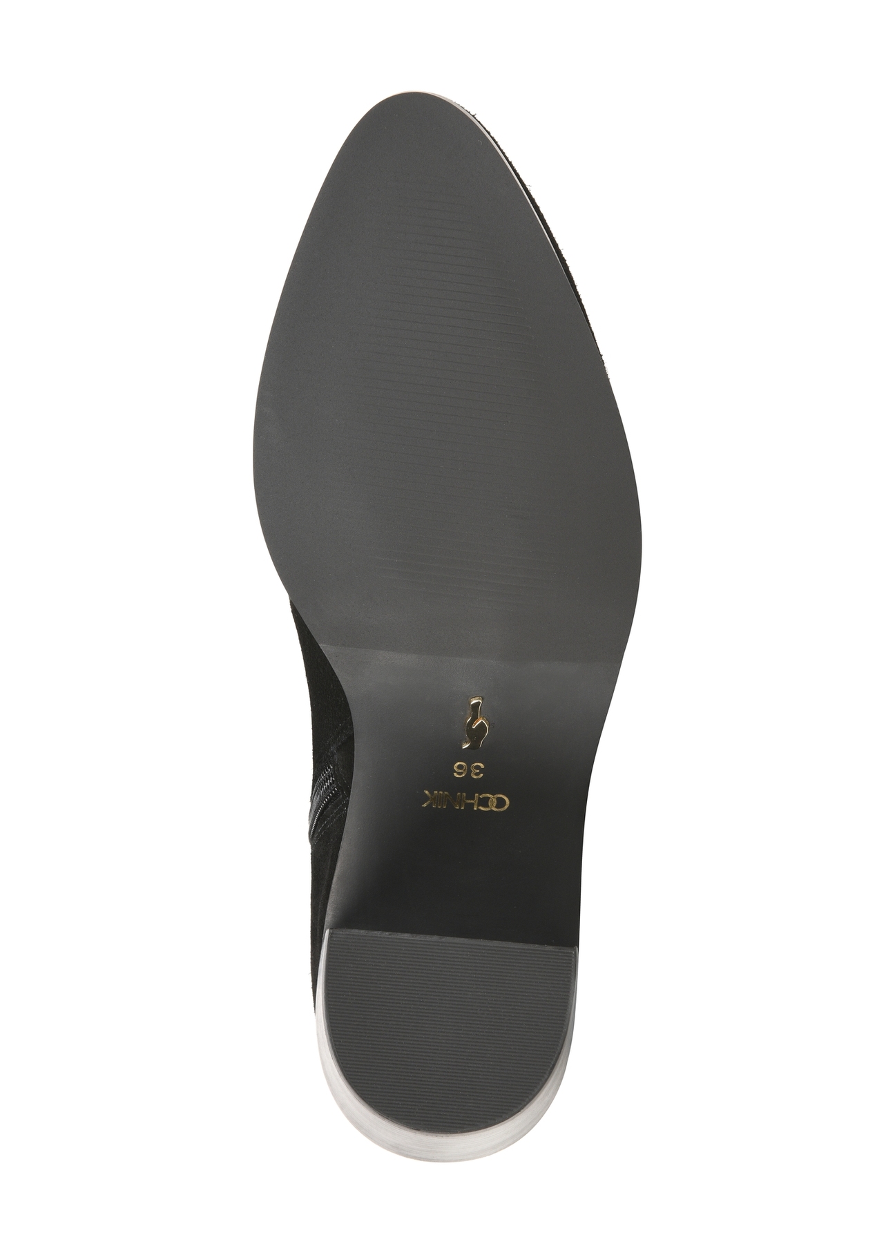 Класичний вигляд черевиків доповнює злегка загострений носок та каблук у формі стовпчика висотою 8 см, що візуально подовжують ноги.