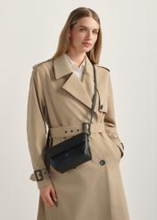 Odpinany, regulowany pasek umożliwia noszenie torebki na różne sposoby, dopasowując ją do każdej stylizacji. Elementy metalowe w kolorze srebra podkreślają jej nowoczesny wygląd.