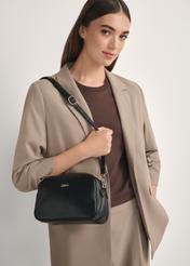 Czarna mała torebka damska wykonana z imitacji skóry to elegancki i praktyczny dodatek na co dzień.