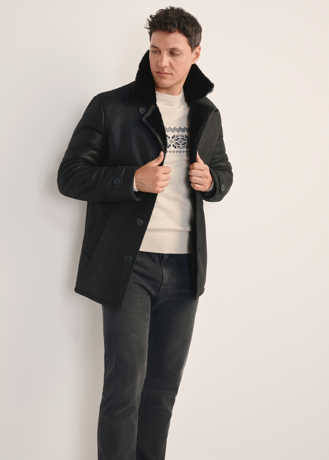 Czarny męski kożuch wykonany z wysokogatunkowej