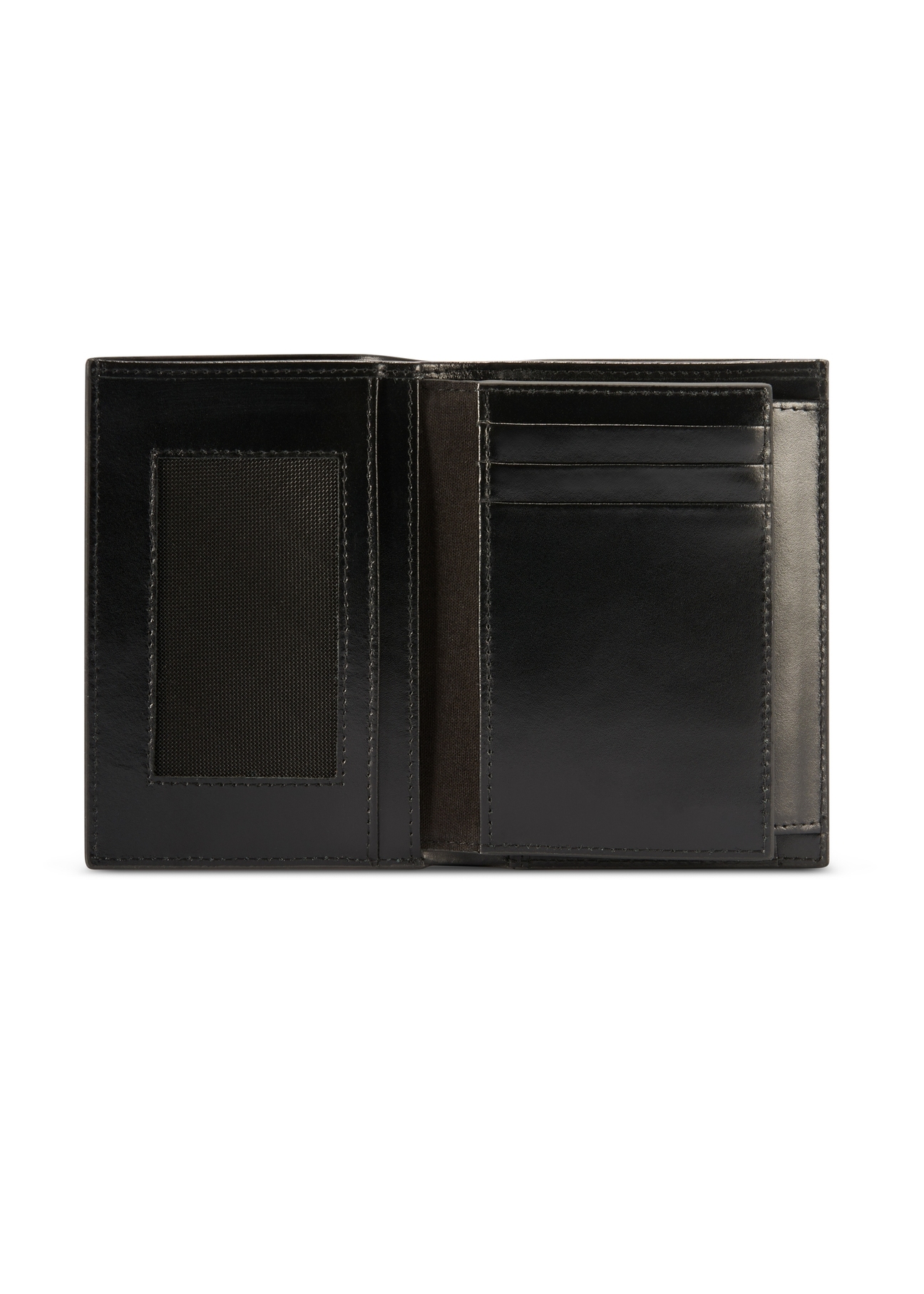 kieszeń na banknoty, kieszeń na bilon zapinaną na zatrzask oraz 11 przegródek na karty i dokumenty, w tym jedną transparentną.