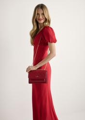 Dodatkowe miejsce oferuje także otwarta kieszeń na przedniej ścianie, a elegancki charakter podkreślają metalowe elementy w kolorze złotym, w tym praktyczny łańcuszek.