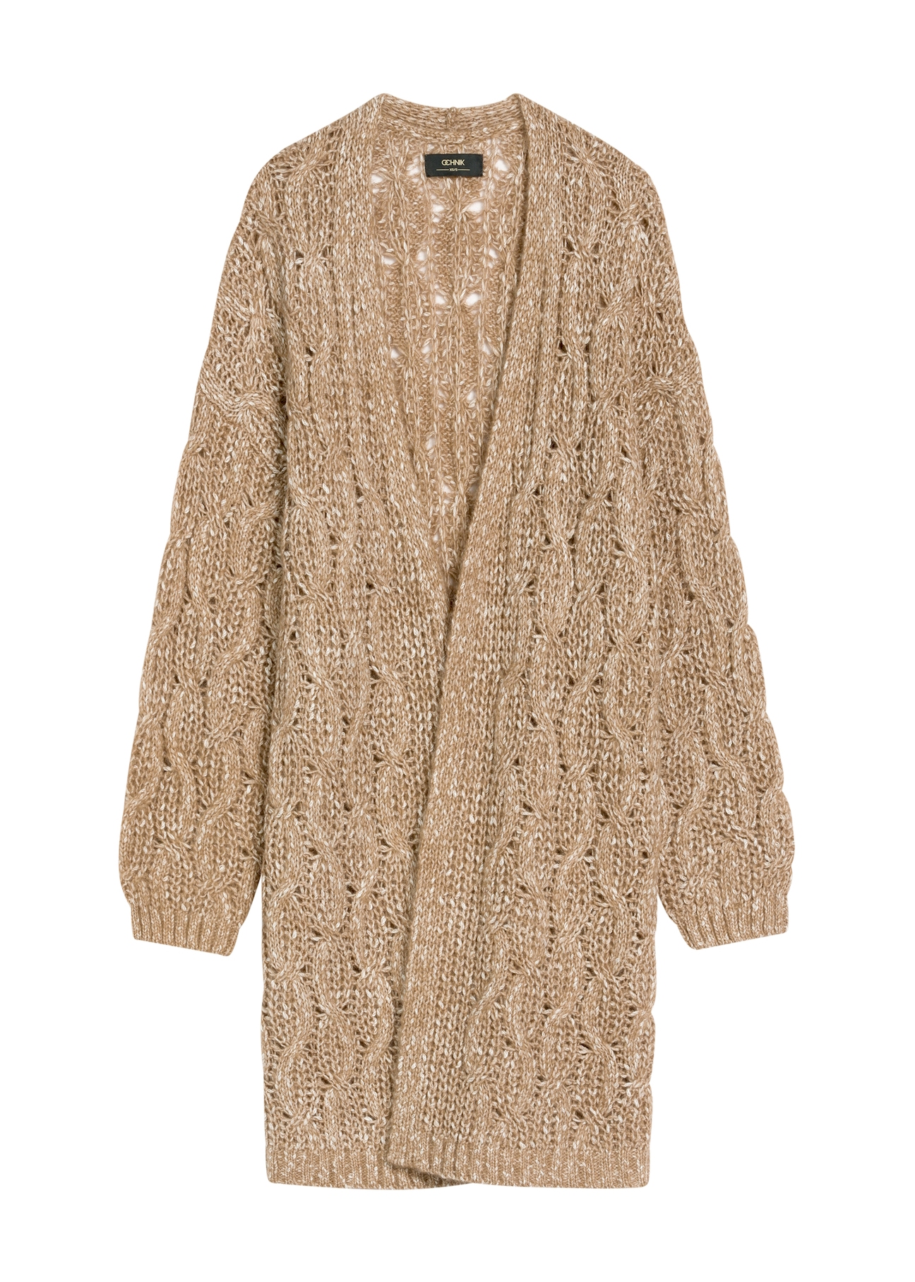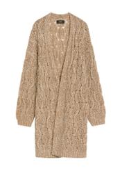 Кардиган виготовлений з м’якої суміші волокон з додаванням вовни, що забезпечує комфорт і приємне тепло. Довжина до коліна та декоративна в’язка додають йому чарівного вигляду.