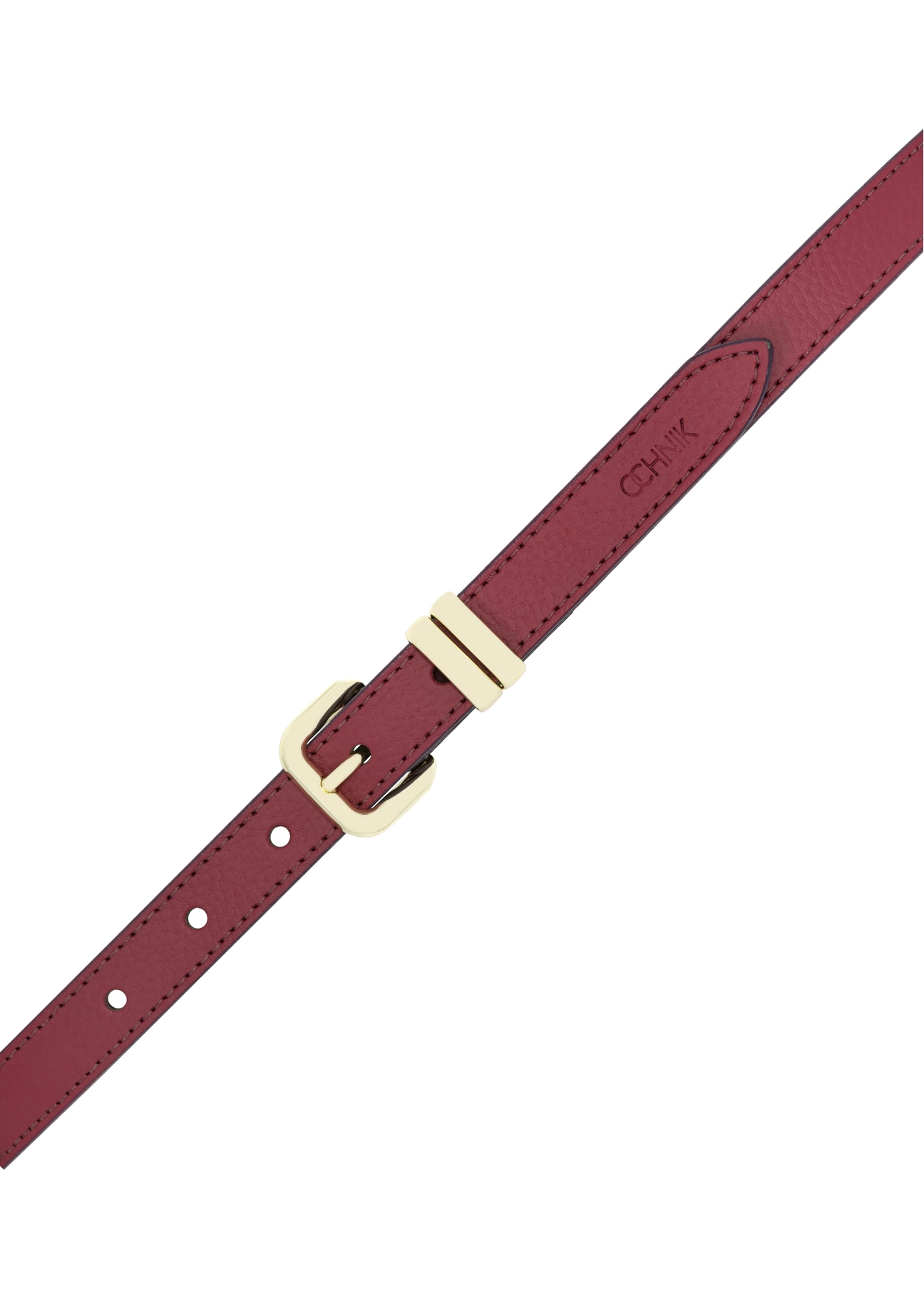 Całość została uzupełniona klamrą w kolorze złota oraz minimalistycznym, tłoczonym logo marki OCHNIK na końcu paska.