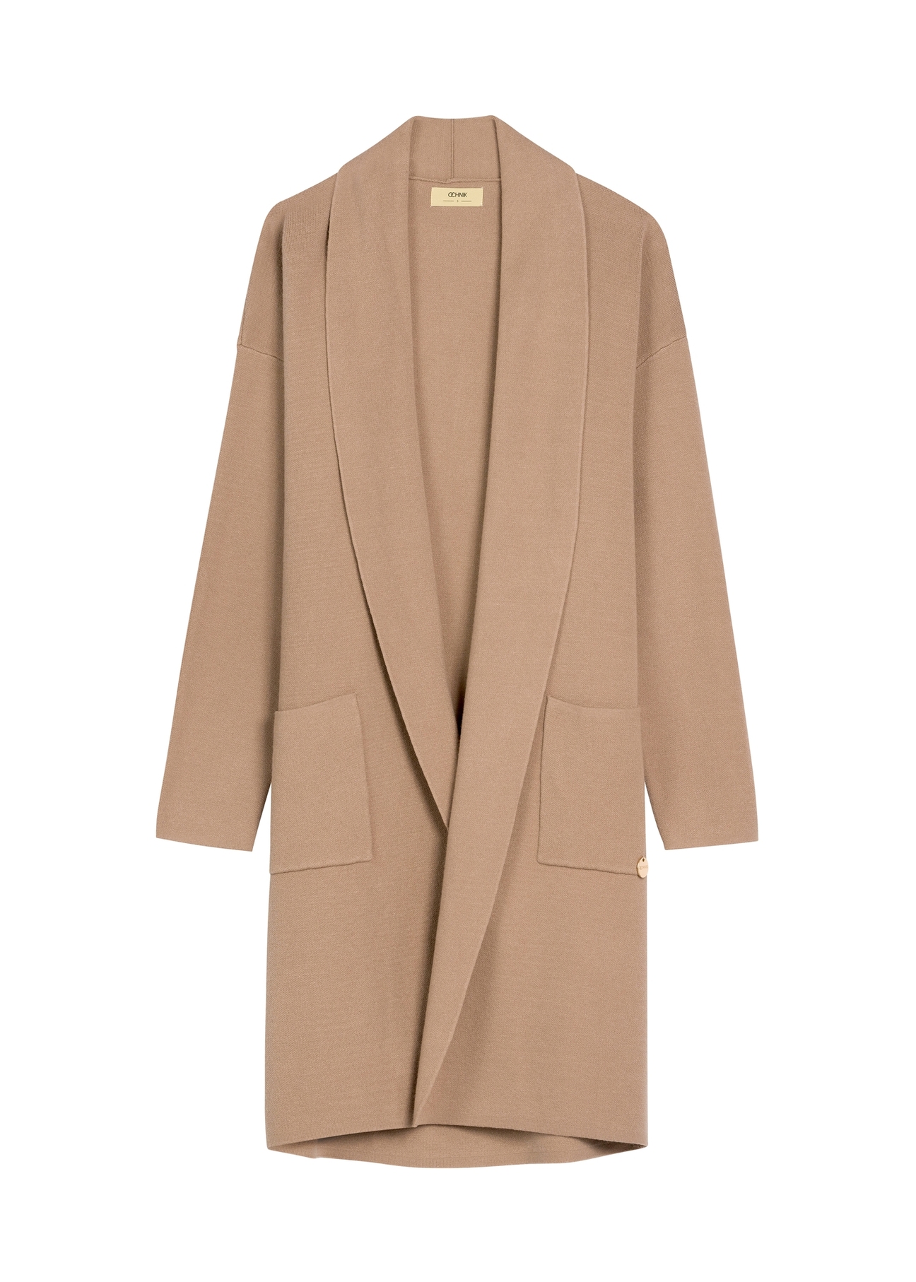 Кемелевий жіночий кардиган — це поєднання позачасової елегантності та стилю, створене для прихильниць класичних образів.