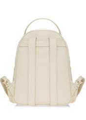 Кремовий жіночий рюкзак виготовлений з екошкіри. Модель з одним основним відділенням і зручною застібкою-блискавкою забезпечує легкий доступ до внутрішнього простору, де розташовані три практичні кишені: одна на блискавці та дві відкриті, ідеальні для дрібних аксесуарів.