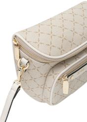 Torebka wykonana z wysokiej jakości materiału, zdobiona ozdobnym monogramem i logotypem marki na froncie, prezentuje elegancki i nowoczesny charakter. Model jednokomorowy z zapięciem na suwak oferuje wygodną organizację – wewnątrz znajdują się dwie kieszenie (otwarta i na suwak).