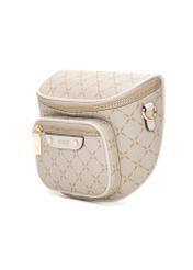 Кремова жіноча поясна сумка з монограмою TOREC-1157-0P(W26), вигляд виробу на силуеті моделі.