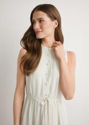 wiązanie w talii pozwala dopasować sukienkę do sylwetki i subtelnie zaakcentować talię.