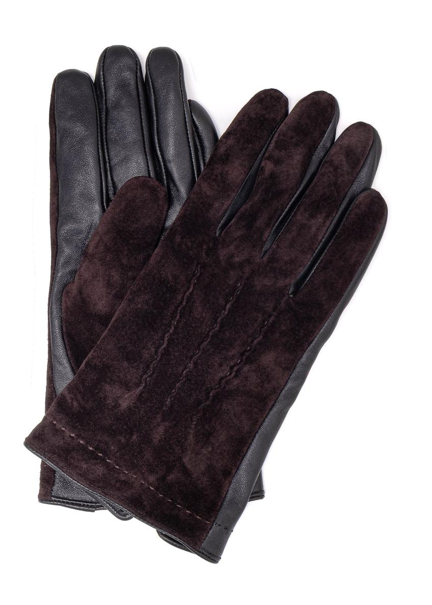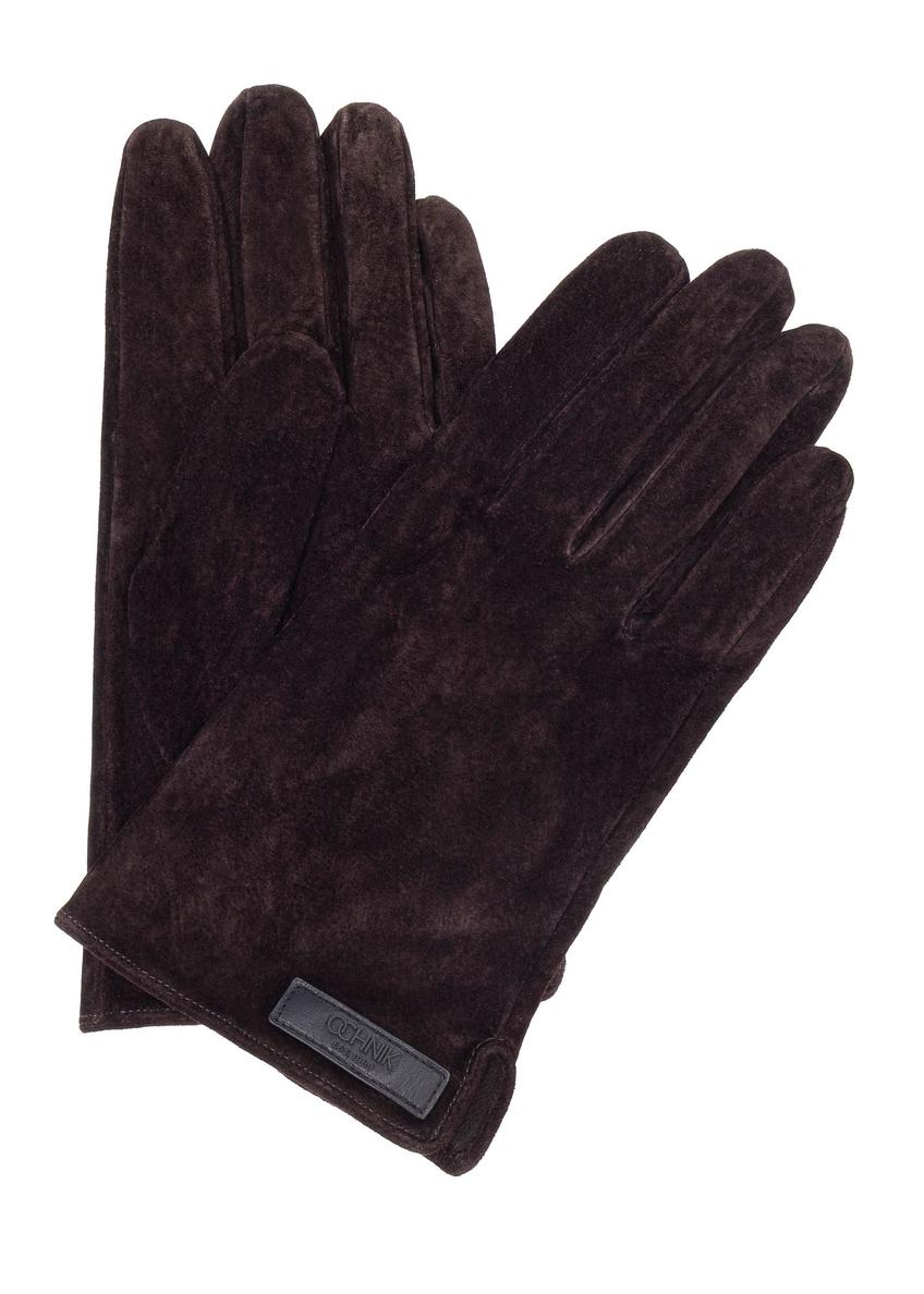 Ciemnobrązowe zamszowe rękawiczki męskie REKMS-0083-90(Z25)