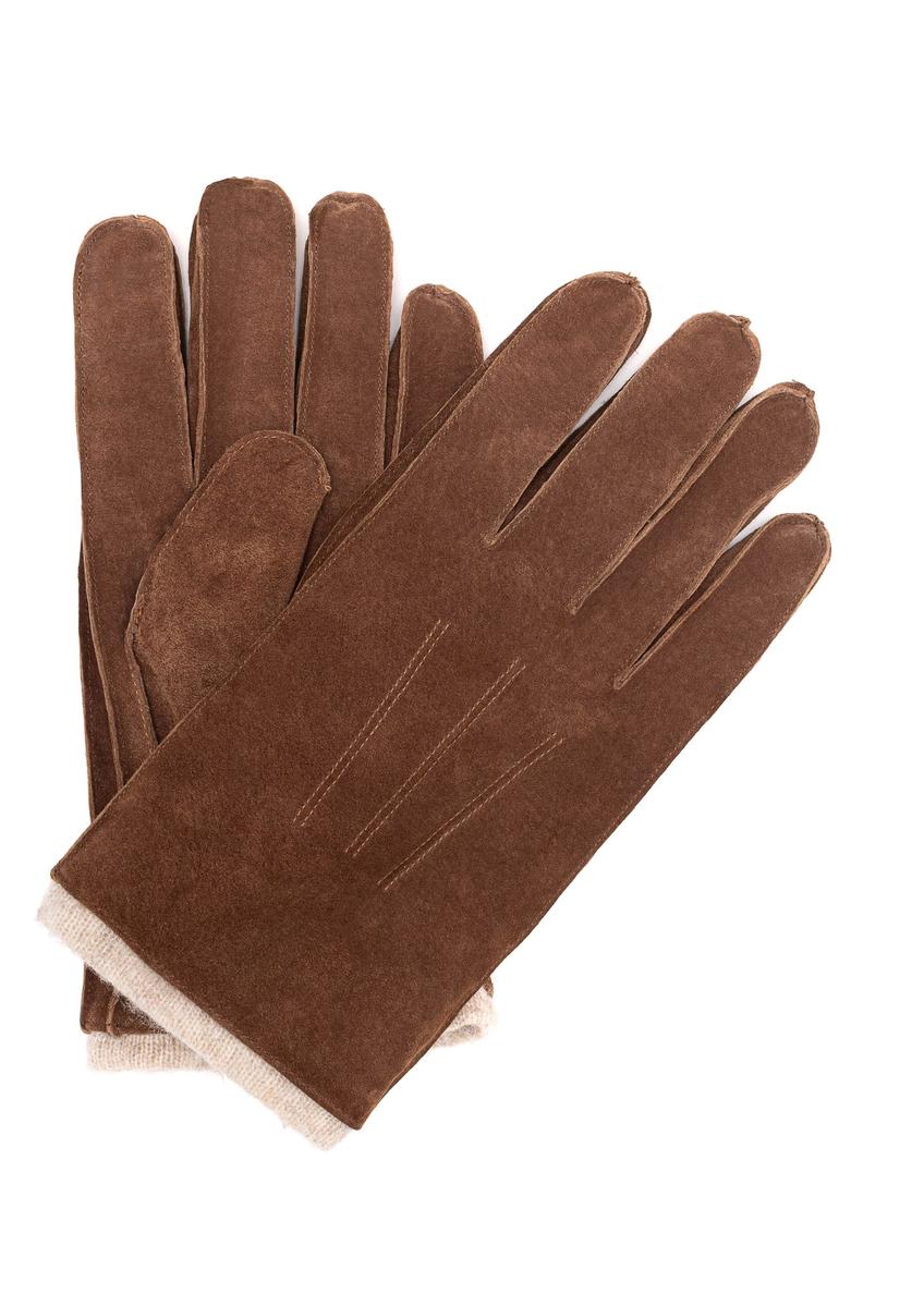 Brązowe zamszowe rękawiczki męskie REKMS-0080-90(Z25)
