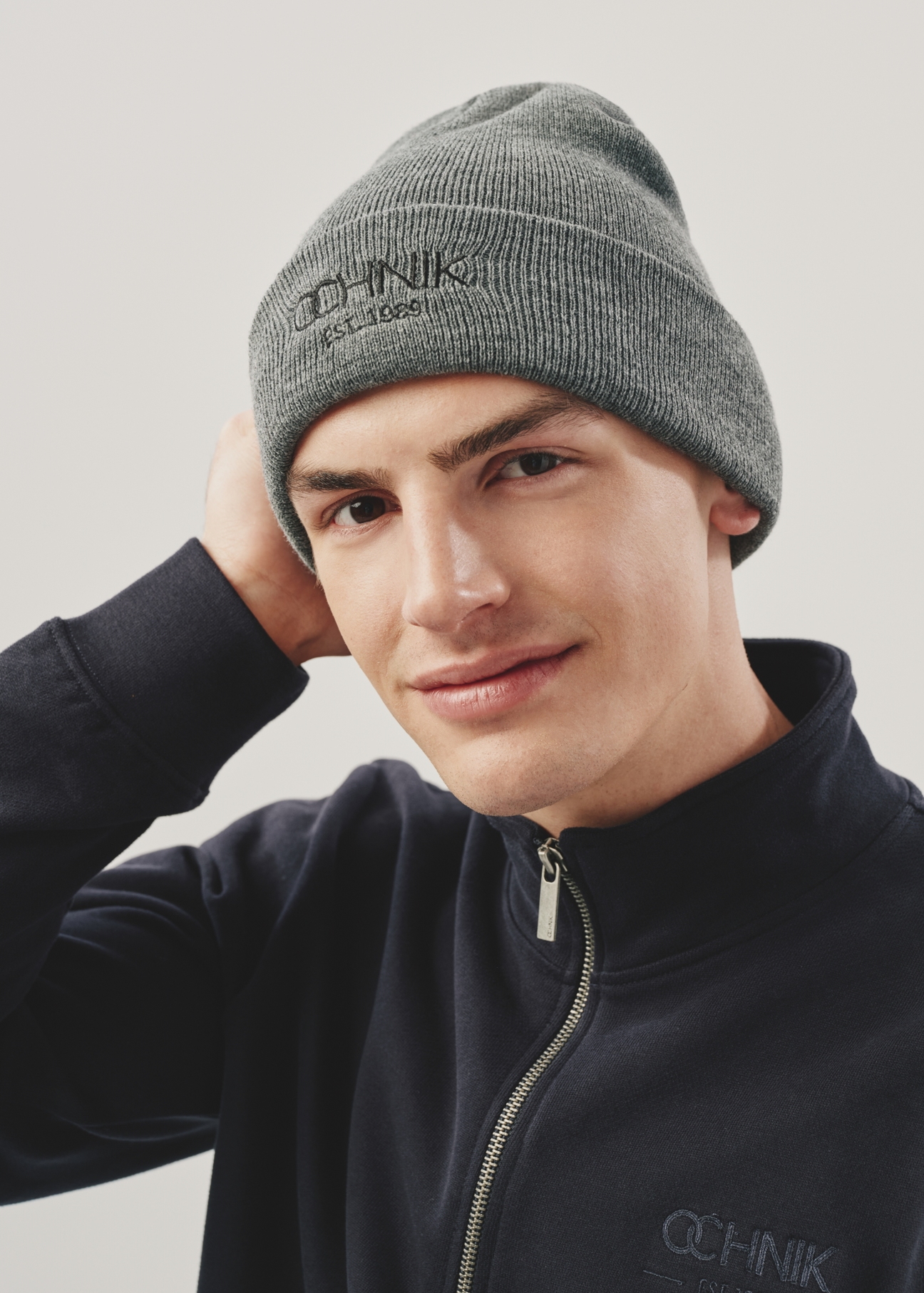 Чоловіча кепка сірого кольору, пошита з приємної на дотик тканини. Проста модель з вишитим логотипом бренду для відчуття тепла.