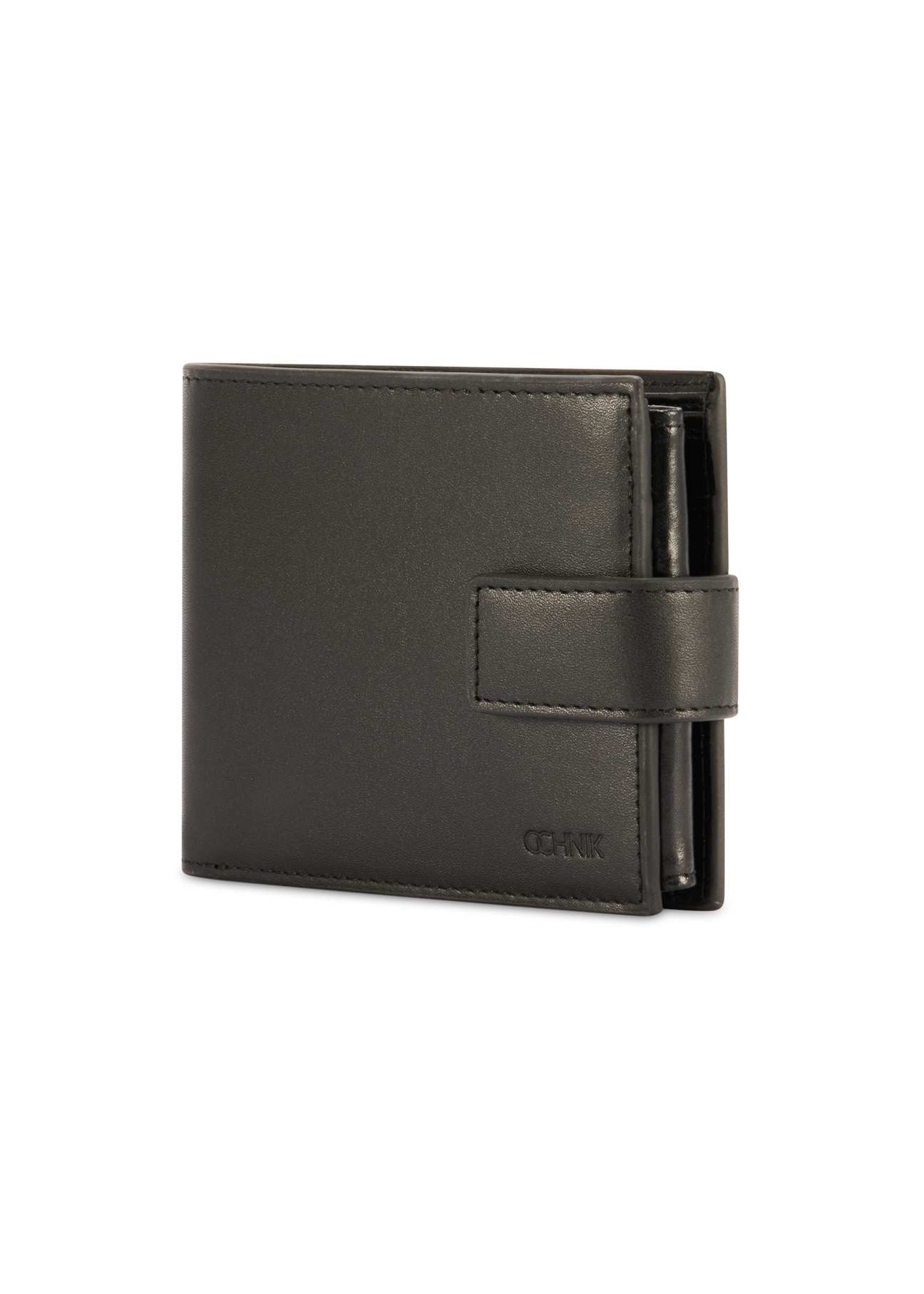 dwie kieszenie na banknoty, kieszeń na bilon zapinana na zatrzask oraz dodatkowo rozkładana część z aż 14 kieszeniami na karty i dokumenty, w tym trzema transparentnymi. Logotyp marki umieszczony na froncie podkreśla jego elegancki charakter.