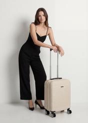Мала валіза з міцного, стійкого до подряпин матеріалу – ABS. Валіза має подвійні колеса з діапазоном обертання 360°. Завдяки гумовій ручці та висувній ручці її можна зручно транспортувати. Всередині валіза розділена на два відділення. Одне відділення на блискавці з практичною сітчастою кишенею, інше – на еластичних ременях, що запобігають переміщенню багажу. Підходить для перевезення ручної поклажі авіакомпаній Ryanair, LOT, Norwegian, Easy Jet, Lufthansa та WizzAir.