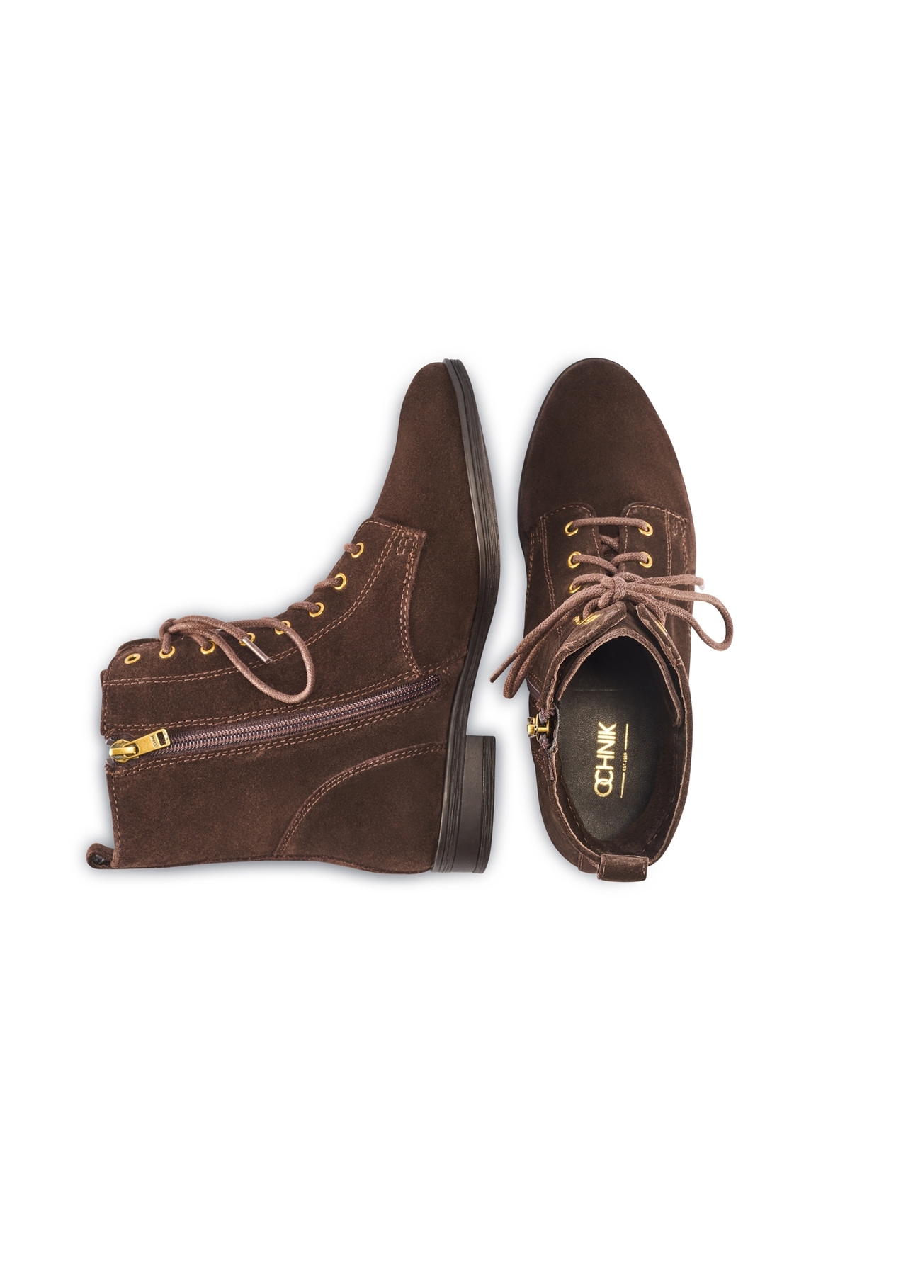 Завершує образ округлий носок та мінімалістичний логотип бренду OCHNIK золотого кольору.