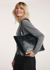 Глибокий чорний колір і натуральна шкіра з мотивом крокодилячої шкіри надають сумці розкішний характер, поєднуючись як з класичним, так і з сучасним стилем. Сумка вміщує формат А4, що робить її ідеальною як для ділових зустрічей, так і для повсякденних прогулянок.