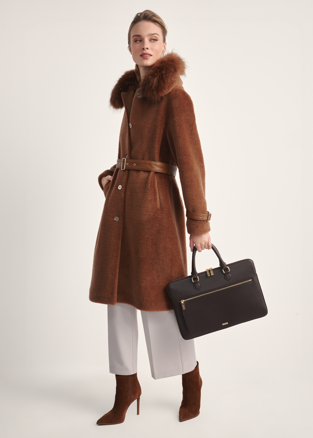 Модель вміщує формат А4, завдяки чому може успішно замінити класичну робочу сумку. Ідеально поєднується з жакетом, сорочкою та класичним взуттям — створюючи цілісний та професійний образ.