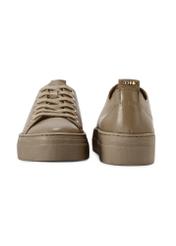 Жіночі шкіряні кеди холодного бежевого кольору — це поєднання зручності, функціональності та стилю. Завдяки мінімалістичному дизайну вони пасують до багатьох образів.