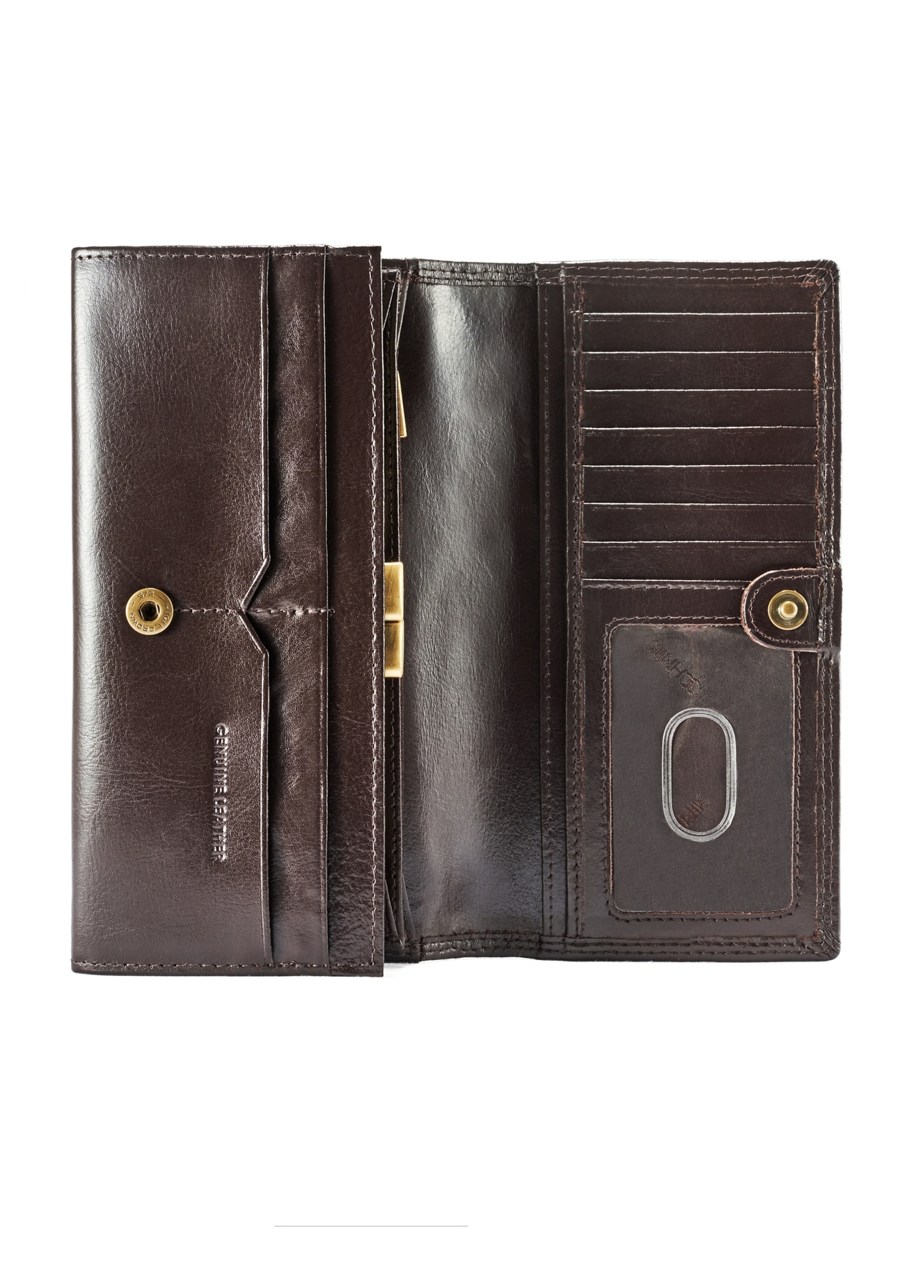 Wnętrze zostało starannie zaprojektowane z myślą o organizacji. W środku znajdziesz, aż jedenaście miejsc na karty płatnicze, trzy przegrody na banknoty oraz cztery kieszenie na dodatkowe dokumenty.